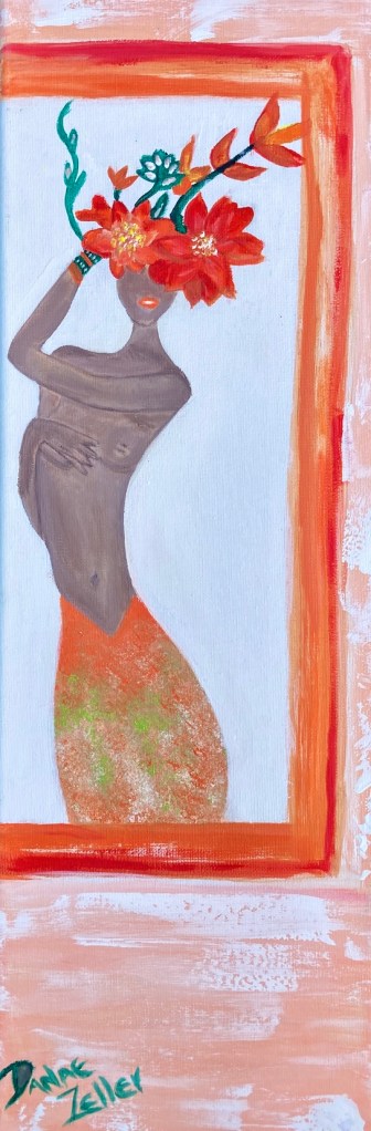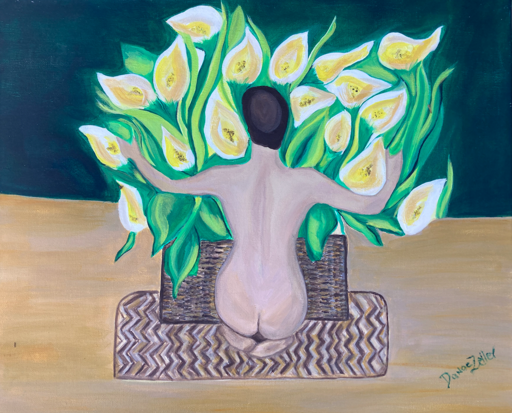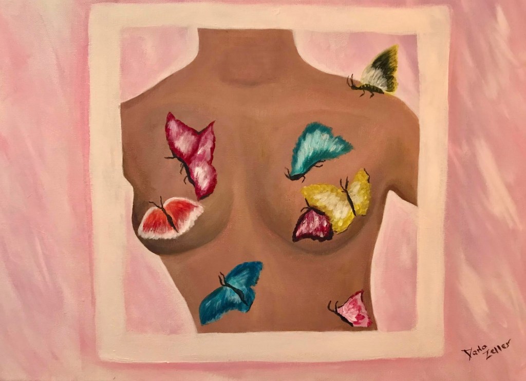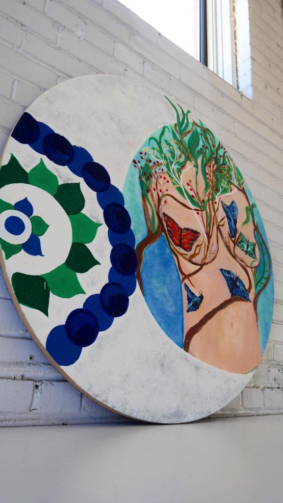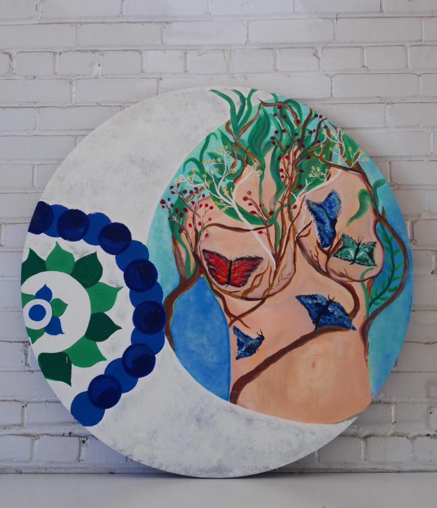 Le papillon doit essentiellement passer par un processus de transformation intérieure qui lui permettra de se transformer. Après avoir accompli ces cycles, il développera toute son anatomie pour enfin déployer ses ailes et devenir un papillon. J’ai choisi ce nom pour ce tableau car c’est l’histoire d’une femme qui nous inspire à vivre sa propre métamorphose. Elle a réalisé qu’elle n’avait qu’à traverser son chemin personnel de l’intérieur et ainsi comprendre que chaque étape est essentielle pour pouvoir déployer ses ailes et enfin voler.
